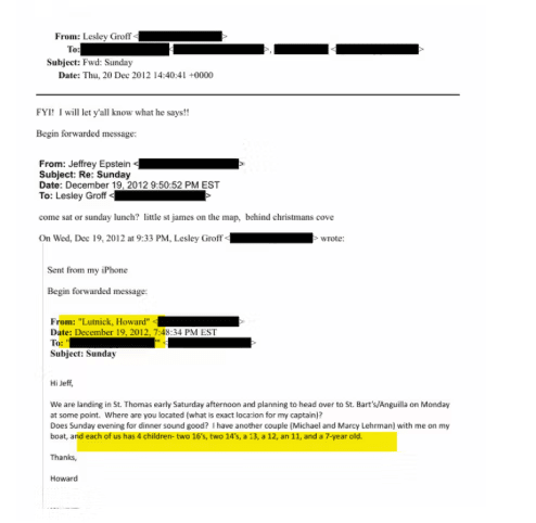 Howard Lutnick ran Cantor Fitzgerald, a big Wall Street firm. He claims he cut ties with Epstein after 2006. But emails show him planning a family trip to Epstein’s island in 2012, and Epstein donated $50,000 to an event Lutnick hosted in 2017. Recent file drops include the exact 2012 email where Lutnick discusses bringing his family and lists the children’s ages. He had publicly sworn a 2005 meeting that left him revolted and that he never went near Epstein again. The contradiction is now all over X.